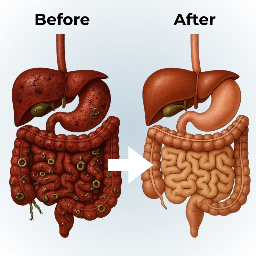 Eliminates a wide range of intestinal and tissue parasites, including pinworms, roundworms, hookworms, lungworms, whipworms and tapeworms. Supports a cleaner, healthier digestive system by helping the body naturally expel harmful organisms and restore balance.
